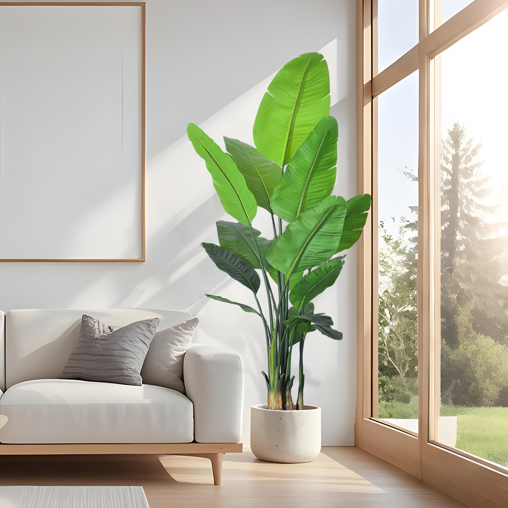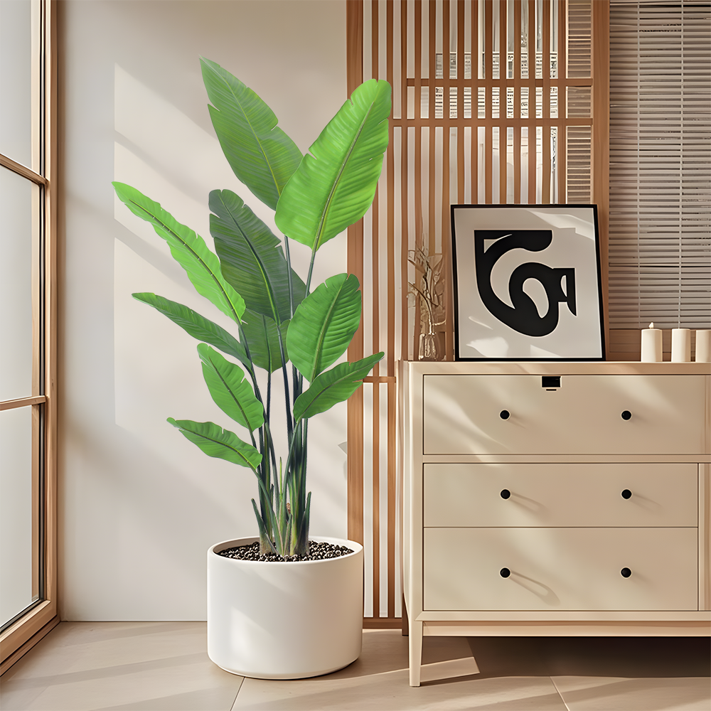 Elevate your space with the timeless beauty of the tropics. Our exquisite Artificial Birds of Paradise Plant captures the dramatic flair of the stunning Strelitzia plant with unparalleled realism. Featuring lush, broad fan-like leaves and a perfectly proportioned trunk, this faux tree brings a vibrant, resort-style elegance to any setting without any maintenance. It remains eternally fresh and green, ideal for brightening up a sunny corner, creating an indoor focal point, or enhancing a pest-free outdoor living area.